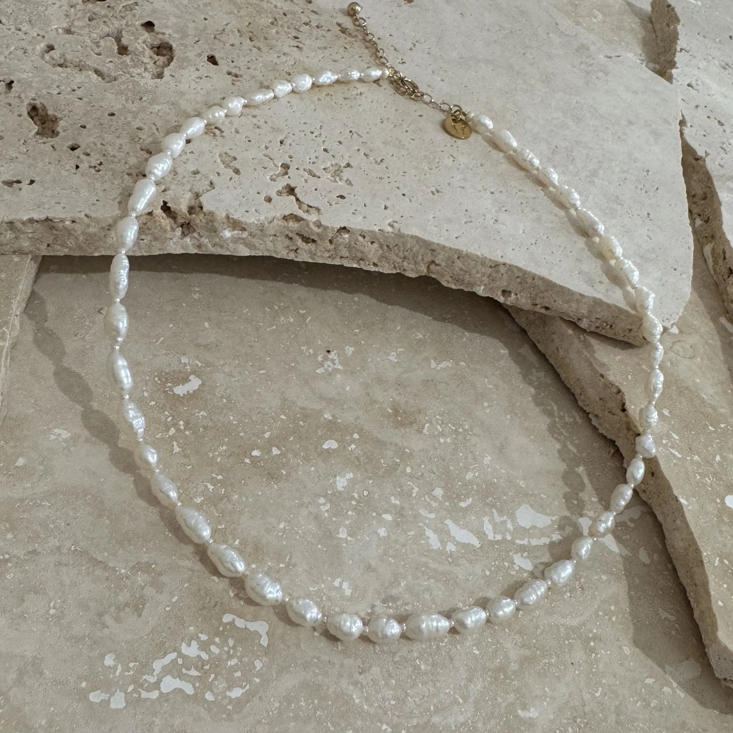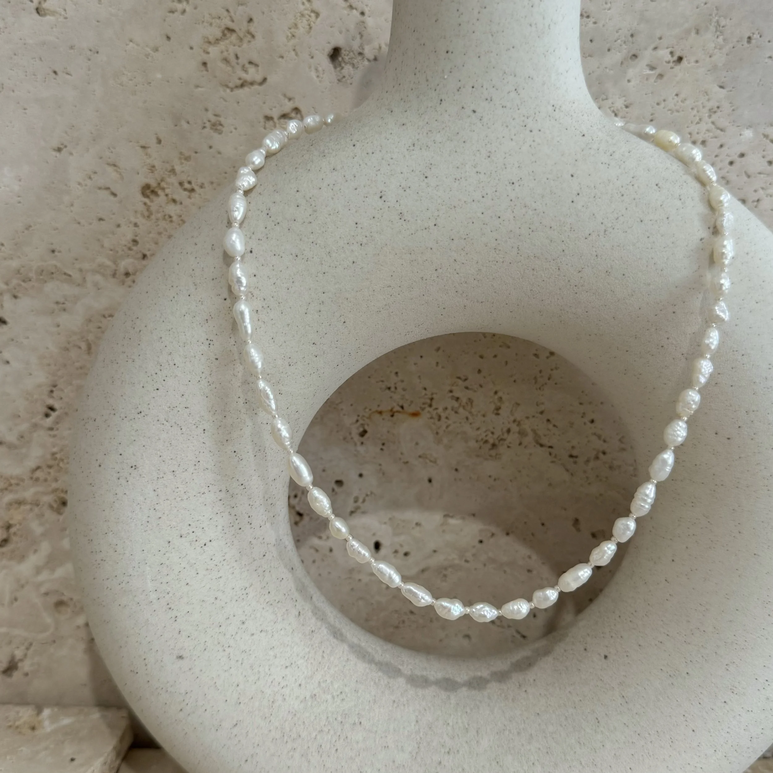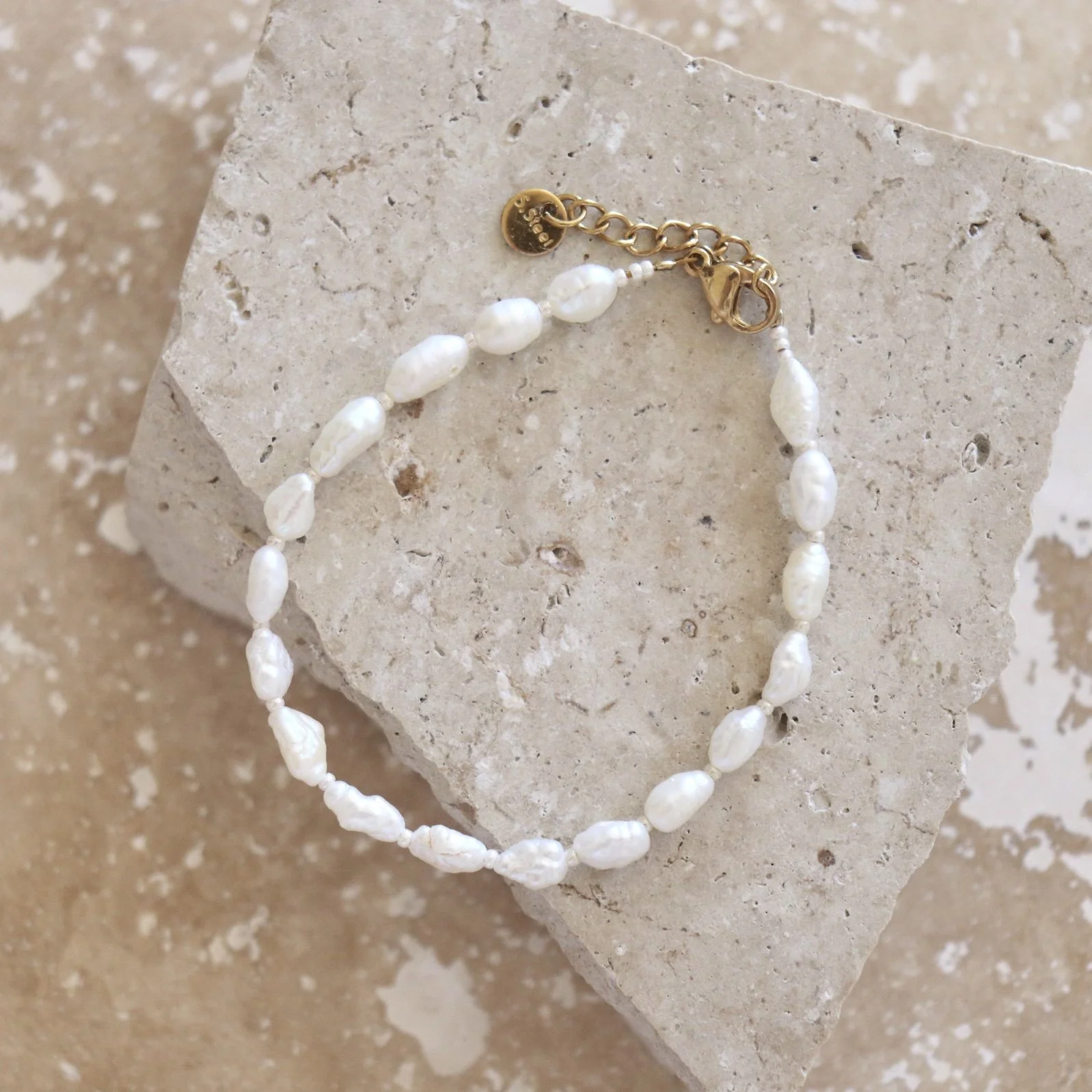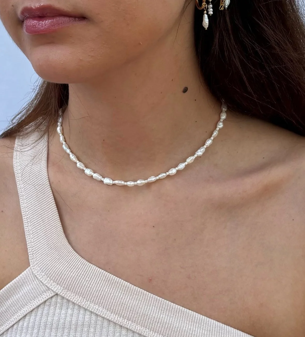 These tiny 3-5mm freshwater rice pearls have been paired with high-quality tiny Czech seed beads for a truly minimalist finish. Make it a set. Available in earrings (10mm huggies), bracelets, anklets and necklaces.