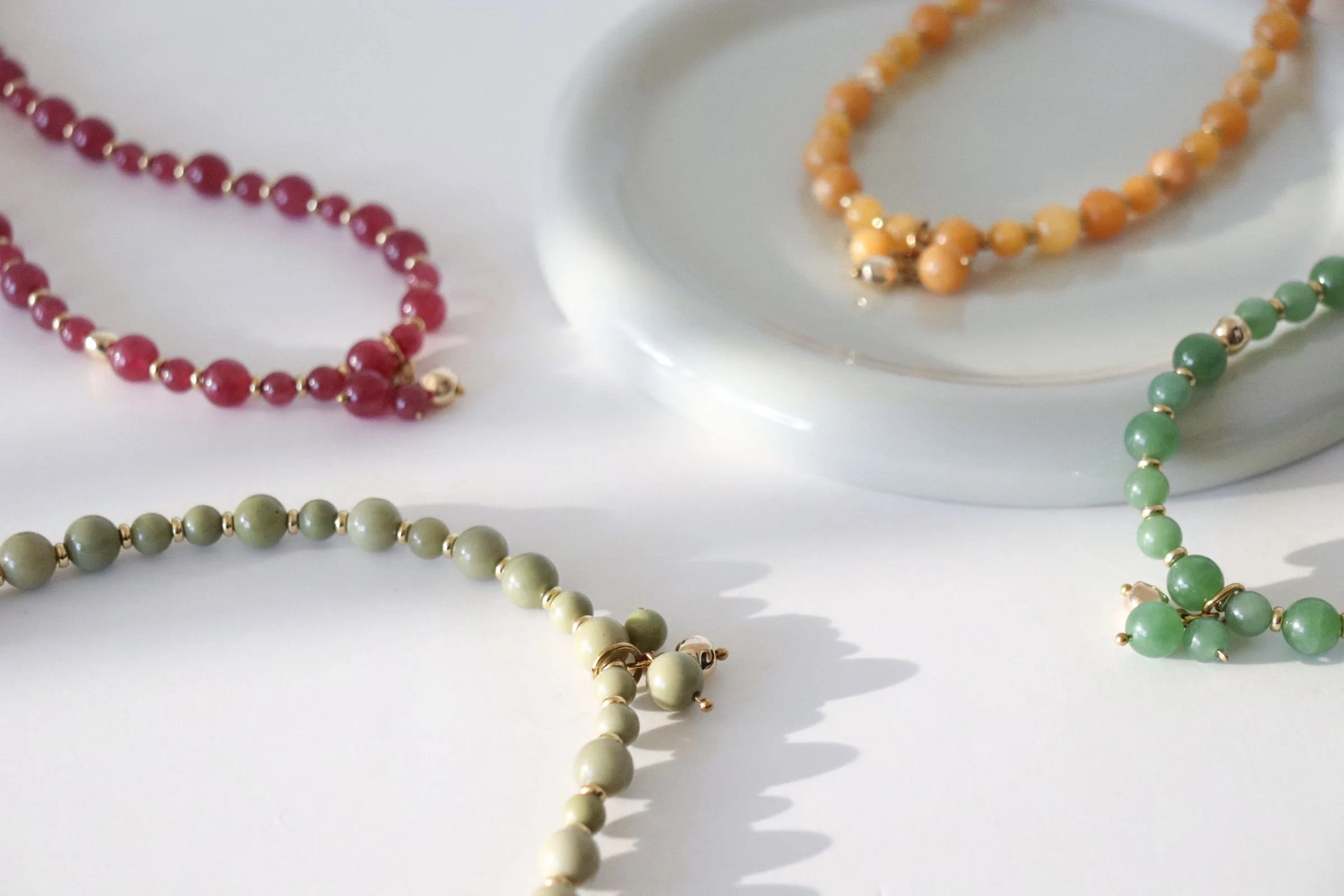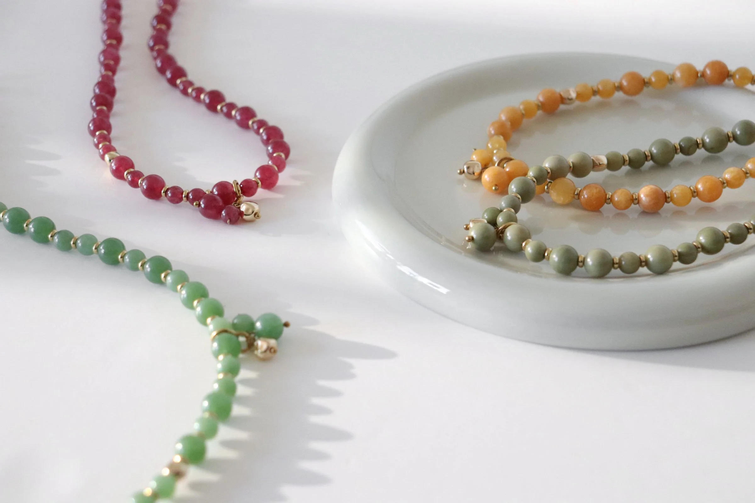 Stones, shells, and pearls that have been placed together with great intention towards resort styling with balance,